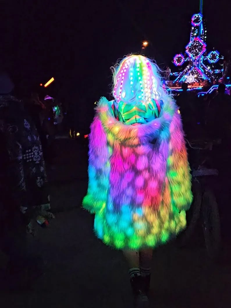 Fabric: High-grade faux fur, fluffy and warm, with excellent light reflection to amplify the glowing effect.